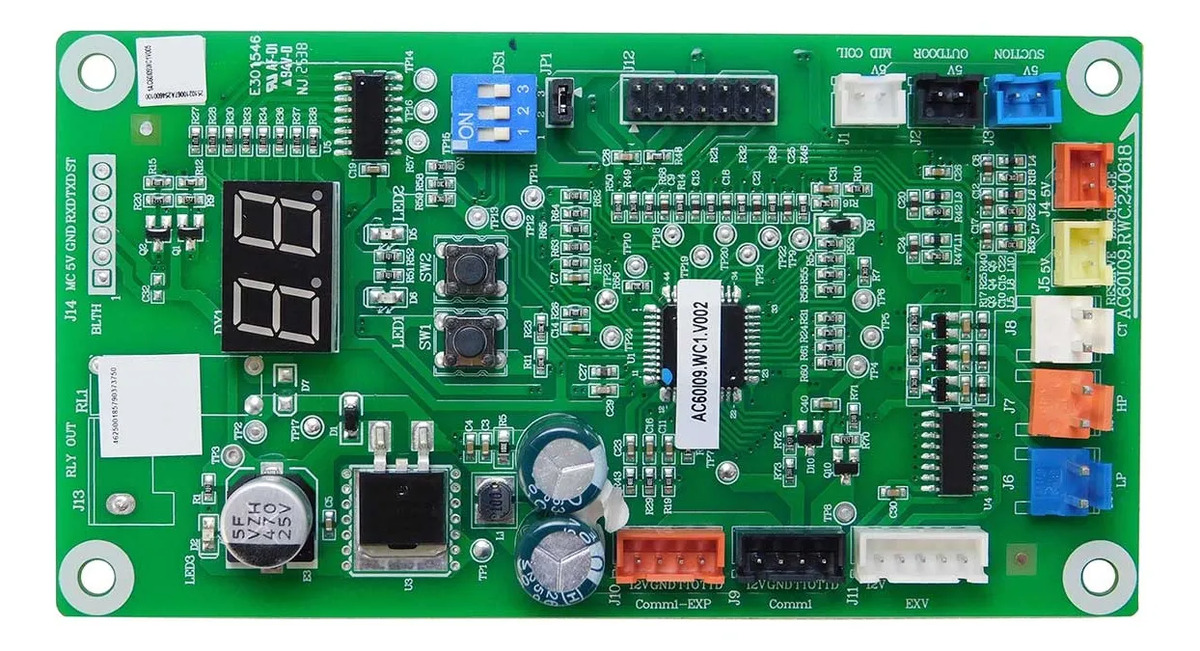A placa eletrônica da condensadora é responsável por gerenciar e controlar o funcionamento dos principais componentes da unidade externa, processando os sinais do sistema e coordenando a operação do compressor, ventilador, sensores e demais dispositivos. Esse componente é essencial para o controle das operações e para a comunicação com a unidade interna, contribuindo para o desempenho do equipamento e restaurando o padrão original de fábrica.